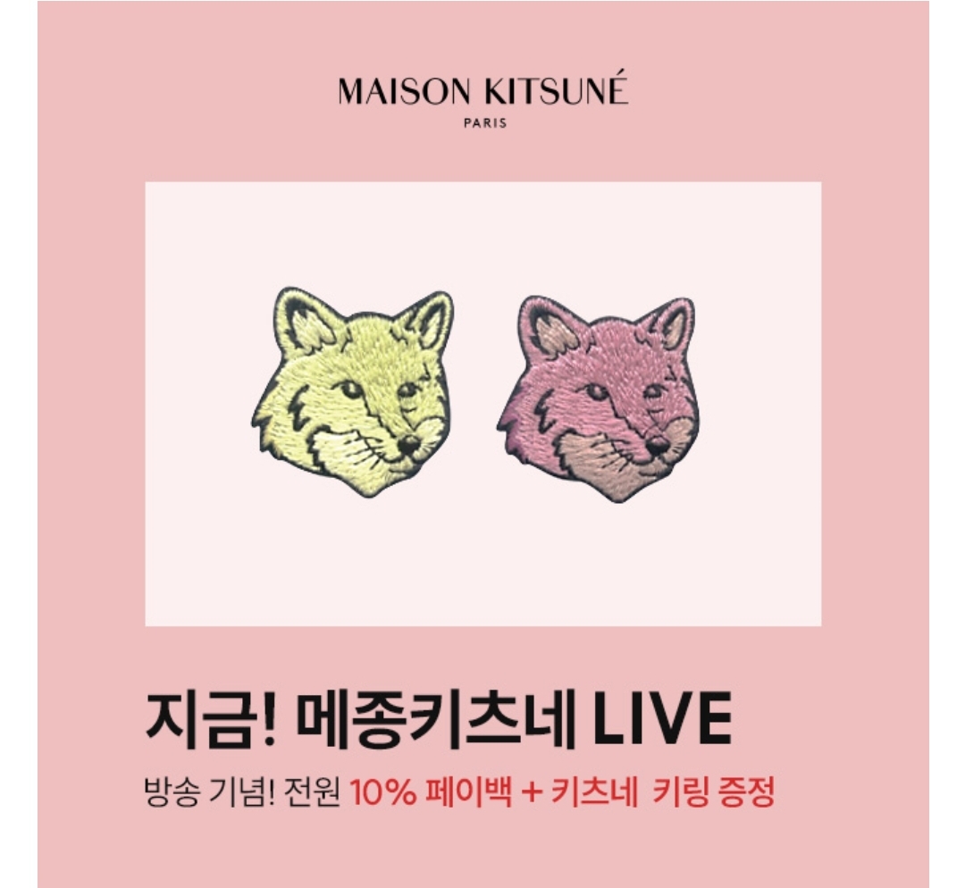셀럽도 사랑한 바로 그 여우를 오늘 라이브에서 데려가고, 방송중 ㅇㅇㅇㅇ 이벤트를 참여하시면 메종키츠네 Cafe kisune 컵 당첨 행운까지 !