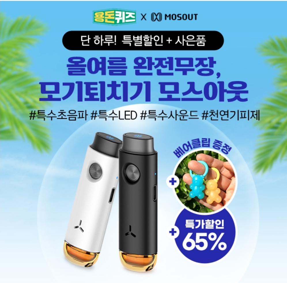 모스아웃은 인체에는 무해하나 모기에는 강력 한 모기 해충퇴치기 끝판왕입니다. 언제 어디 서나 사용이 간편한 000 00의 제품으로 휴 대가 용이하여 실내에서나 야외에서나 편리하 게 사용할 수 있습니다. 또한 클립을 이용해 의류나 모자에도 꽃아서 다양하게 사용할 수 있는 활용도 높은 제품입 니다. 000 00에 들어갈 단어는 무엇일까요? ( 힌트 ㅁㄱㅇㅌㅇ)