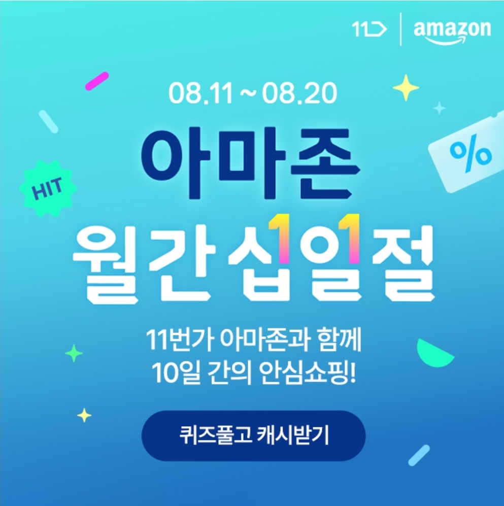 8월, 11번가가 혜택 가득 안고 아마존 월간십 일절로 돌아왔습니다! 단 10일간의 0000! 이젠 안심하고 해외직구 시작해보세요! 0000에 들어갈 단어는 무엇일까요?