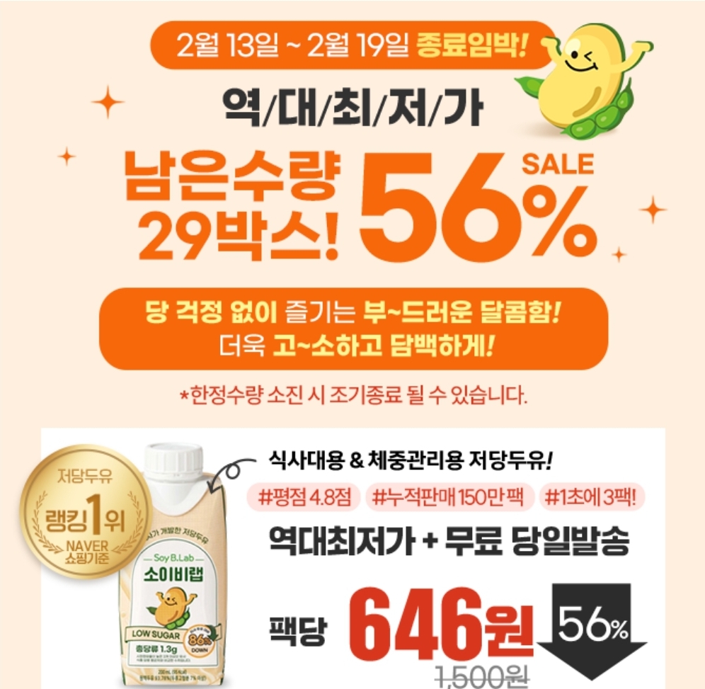 [단 29박스 남았어요!] 소이비랩 한정수량 56% 할인!