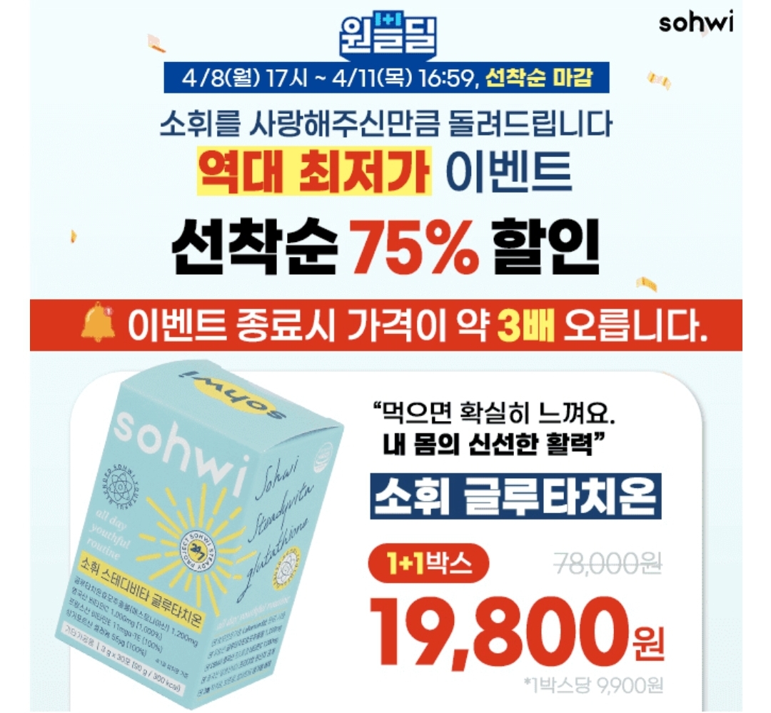 단3일간 75% 소휘 글루타치온 1+1 득템기회
