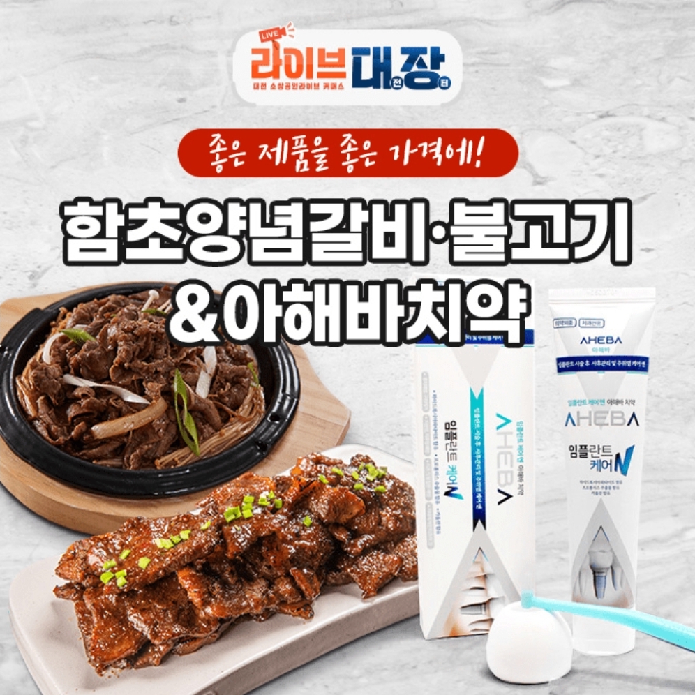 오늘 대전광역시 특가 기획전으로 함초양념갈비 ㅇㅇㅇㅇ 500g 7,900원 아해바 치약 1개입 6,900원으로 라이브특가로 소개드립니다!
