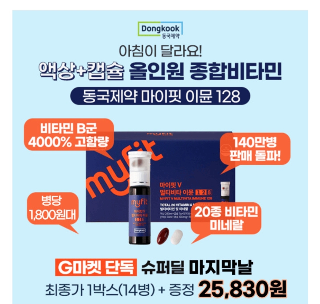 일명 #ㅇㅇㅇㅇ #새해활력템 동국제약 마이핏V이뮨128은 비타민B군 4000%와 20종의 비타민과 미네날을 한 병에 담은 올인원 비타민인데요! ㅇㅇㅇㅇ은 무엇일까요