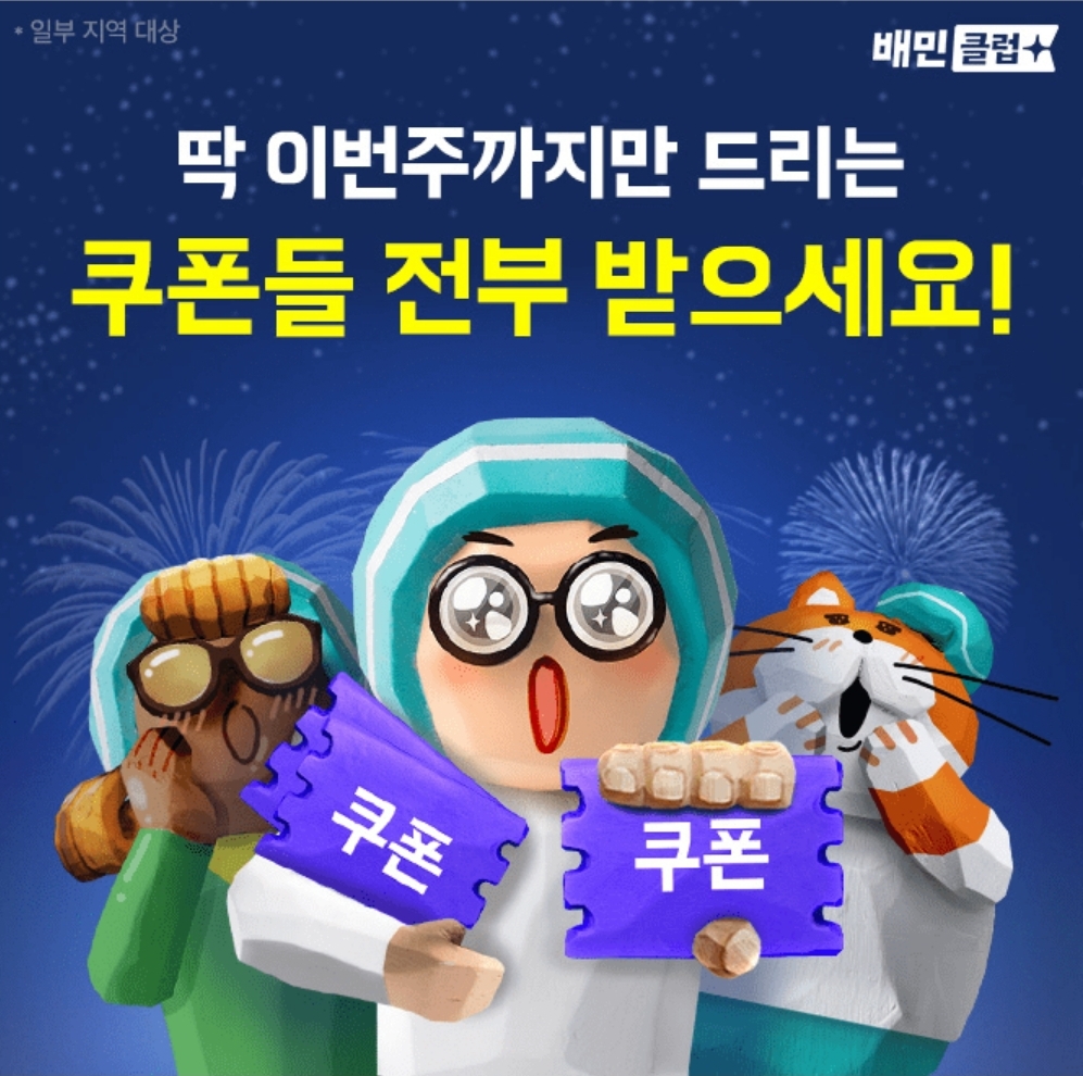 지금 배민에서는 0000 회원 전용 쿠폰을 드려요! 빈칸에 들어갈 단어는 무엇일까요? (초성힌트 :ㅂㅁㅋㄹ)