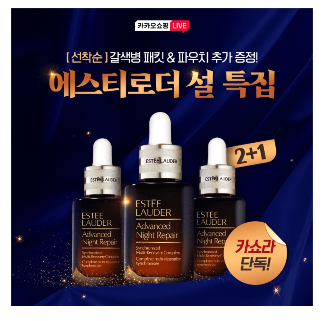 지금 카카오쇼핑라이브에서는 에스티로더 설 ㅇㅇㅇ 특집 라이브로, 카카오 단독 갈색병 2+1 세트가 판매중이다. 또한 라이브 중 선착순 1천명에게 갈색병 샘플 3개를 증정하고 라이브 당일에만 복주머니 파우치를 추가 제공한다. 빈칸에 들어갈 단어는 알맞는 것은?