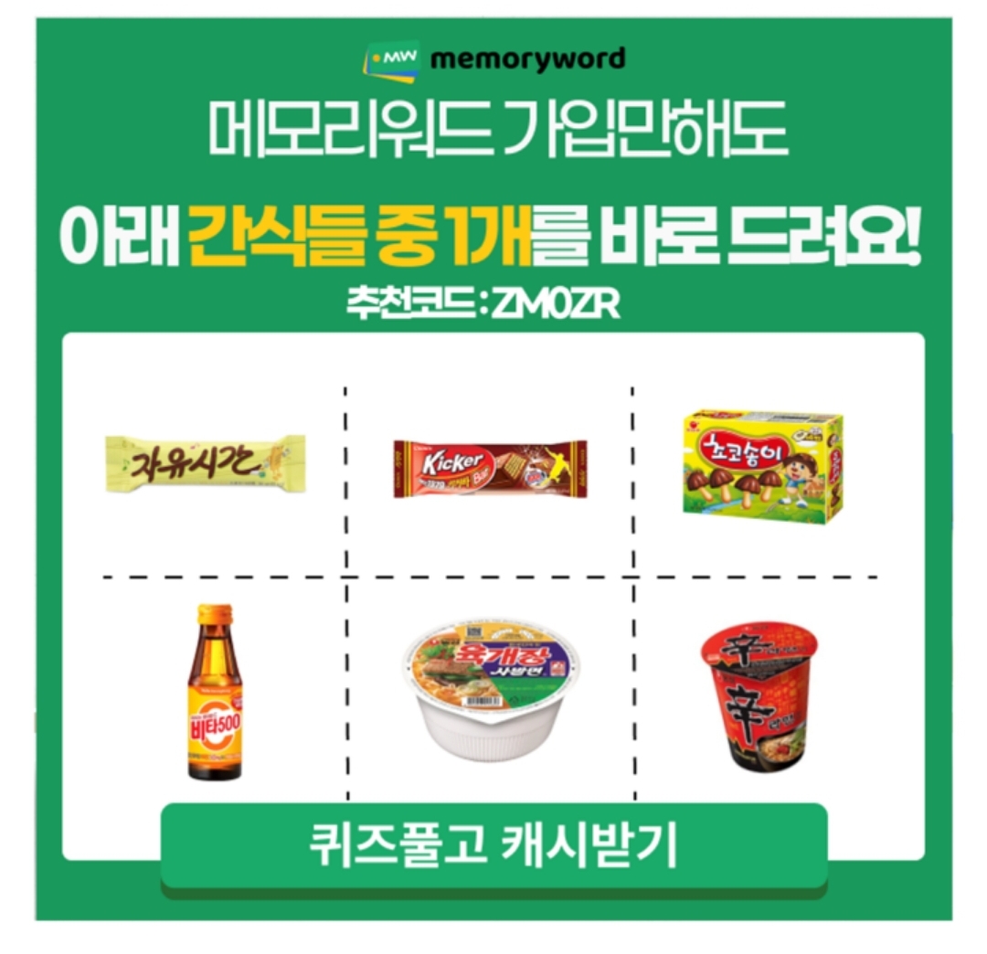 메모리워드 가입만해도 간식을 100% 드려요