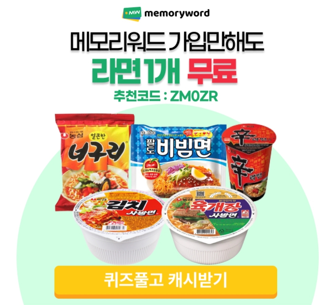 메모리워드 가입만해도 라면 1개 100% 무료 증정!