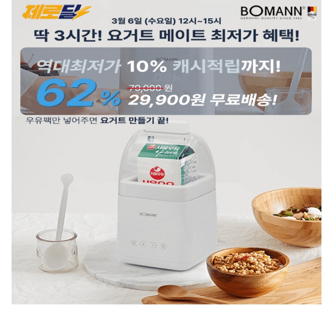 보만 디지털 요거트 메이커 JM6523 캐시워크 돈버는퀴즈정답 3월 6일 수요일 12시