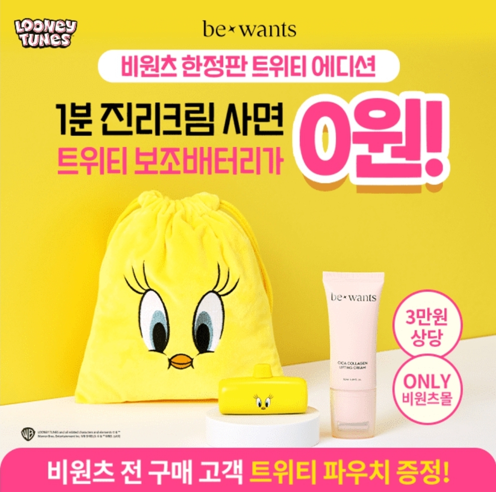 비원츠 스마트스토어에서 전제품 구매시 ㅇㅇㅇ 파우치를 증저해드립니다. 남녀노소 누구에게나 사랑받는 종달새 케릭터 ㅇㅇㅇ은 무엇일까요?