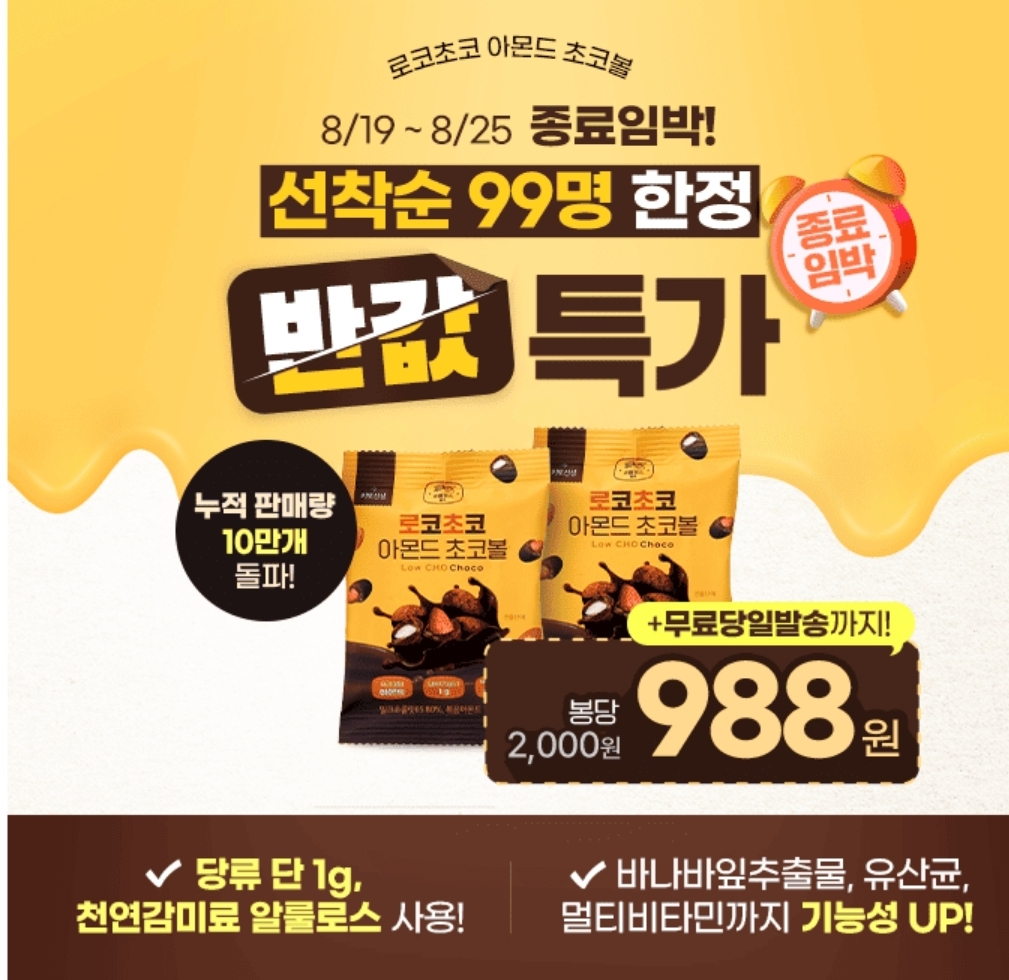 선착순 99명 로코초코 아몬드 반값특가 종료 임박!