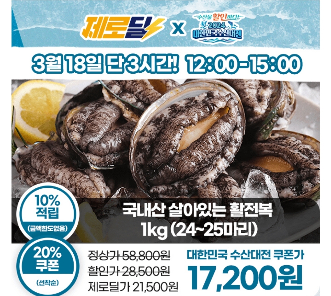 [수산대전]완도산 살아있는 활전복 1kg 역대급 할인