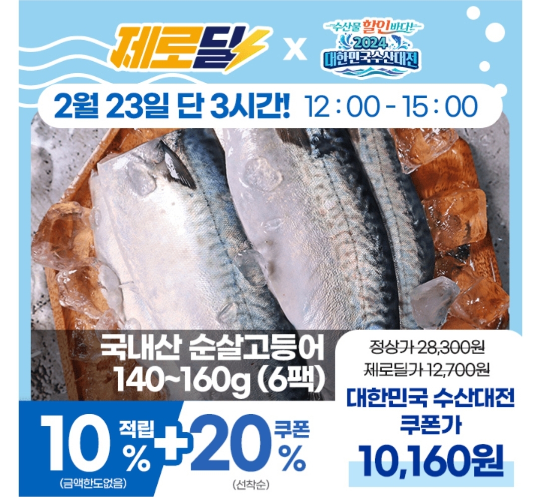 [수산대전]제주 순살고등어 140g 6팩 역대급 할인! 캐시워크 돈버는퀴즈정답 2월23일 금요일 12시