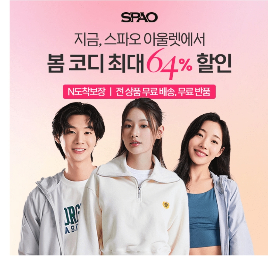 지금 스파오 네이버 브랜드위크에서 24년 신상을 포함하여 봄에 꼭 맞는 다양한 코디템을 최대 ㅇㅇ% 할인가로 구매할 수 있는데요.