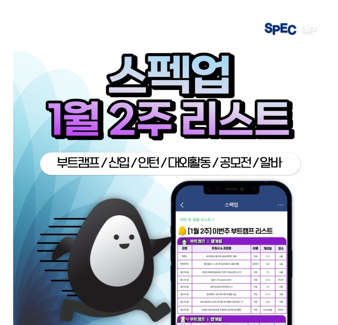 스펙업<대외활동 리스트>의 스펙업 추천 대외활동 카테고리를 보면,