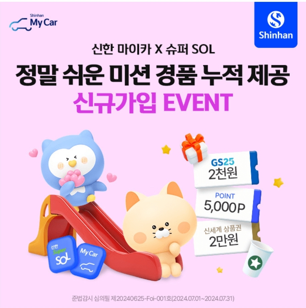 7월 마이카x슈퍼SOL EVENT1 페이지 하단의 [신한 슈퍼SOL 설치하기] 버튼 을 통해 슈퍼SOL 신규 가입 시 마이신한포인 트 5천P 즉시 적립! 000를 통해 슈퍼SOL 설치 및 가입이 진행되 어야 경품 대상에 포함이 돼요! 000안에 들어갈 단어는 무엇일까요? (힌트: ㅂㄹㅋ)