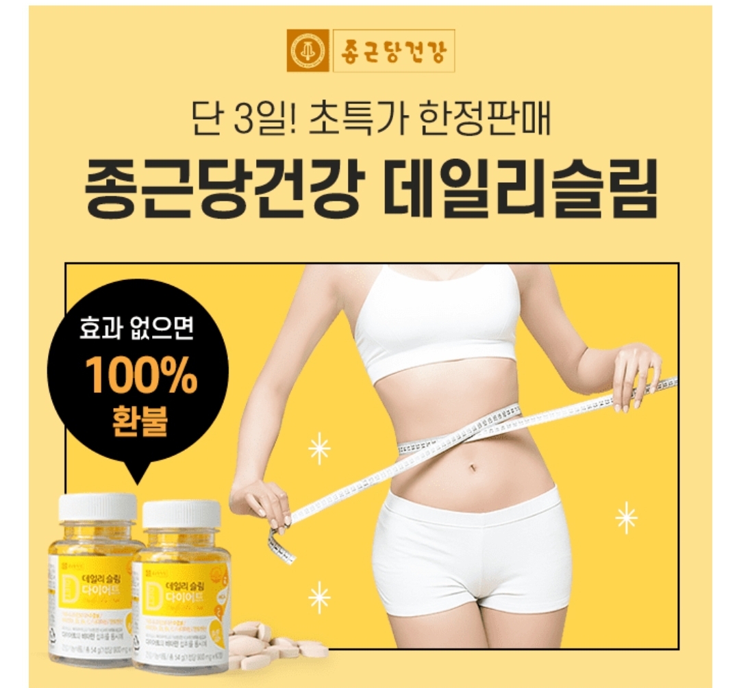 안빠지면 환불! 베스트후기 10만원 종근당건강 데일리슬림