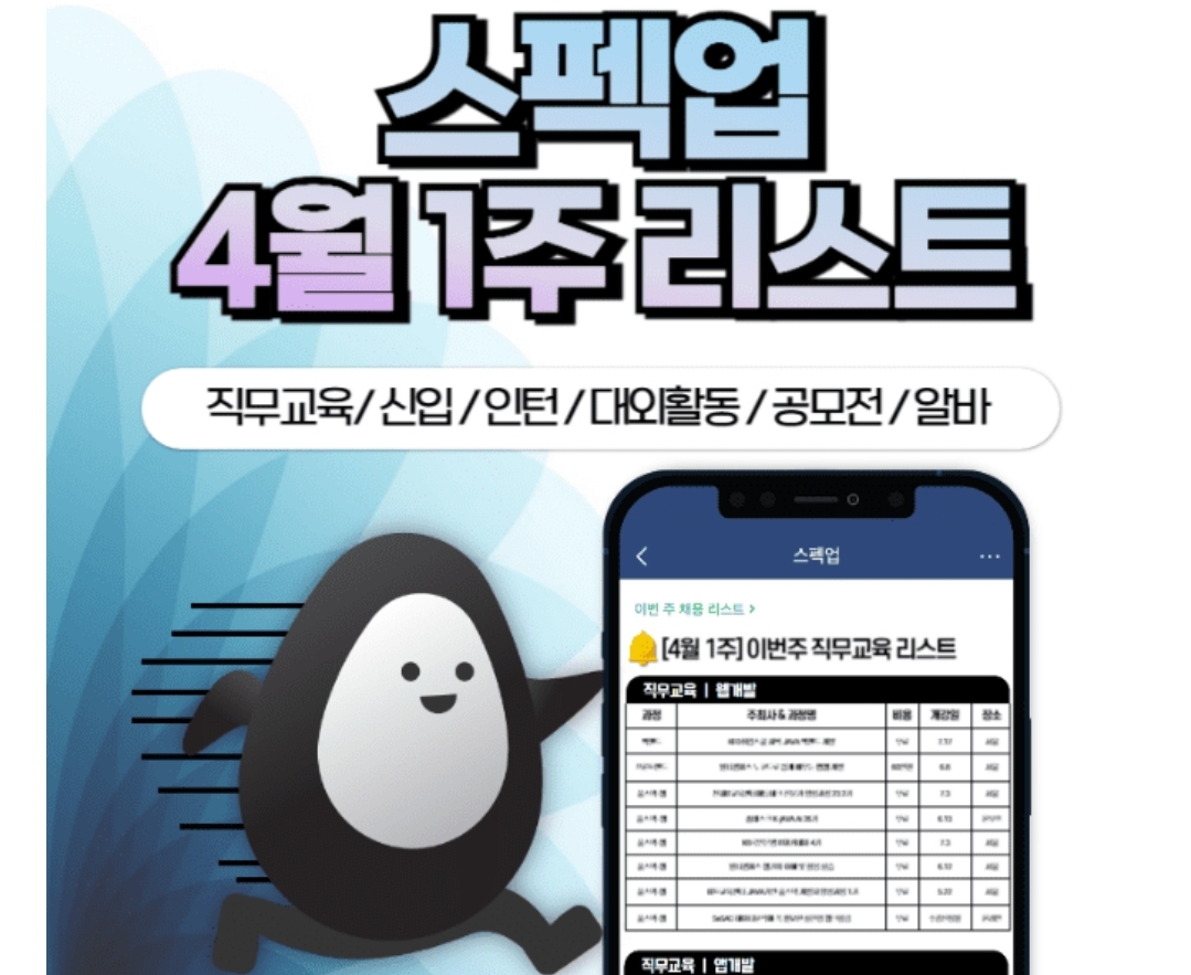 스펙업<대외활동 리스트>의 추천 대외활동 카테고리를 보면,