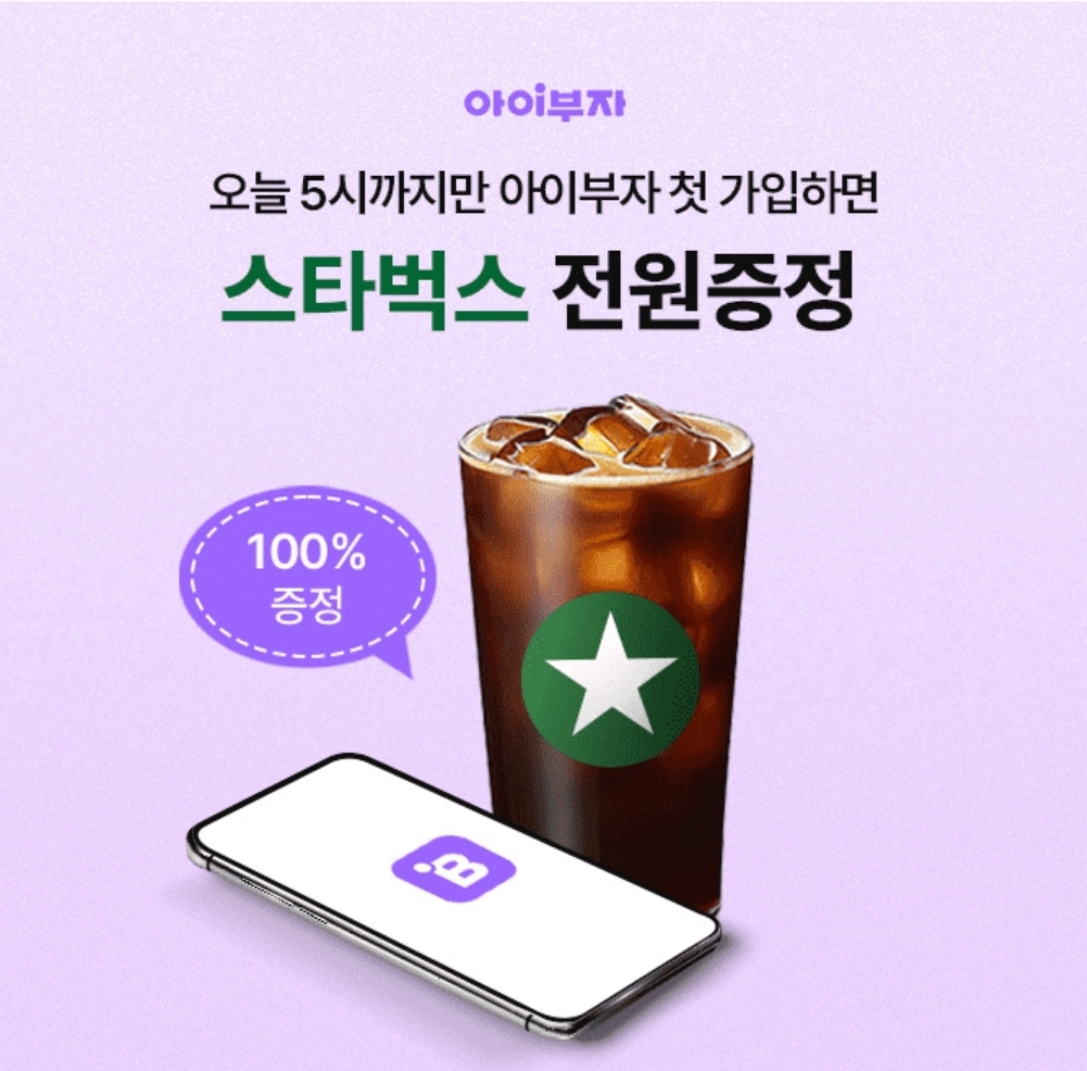 오늘만! 100%증정 아이부자 가입하고 스타벅스 받자