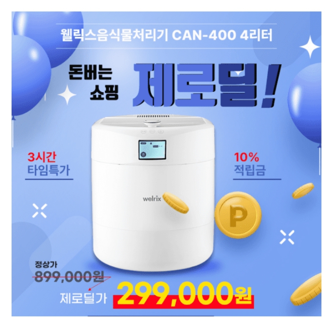 3시간 동안 진행되는 "제로딜" 타임특가에서 "웰릭스 CAN-400 4리터 AI음식물처리기"가 소비자가 899,000원 제로딜가 ㅇㅇㅇㅇㅇㅇㅇ원 무료배송 67% 할인으로 진행됩니다. 빈 칸에 들어갈 숫자는 무엇일까요?