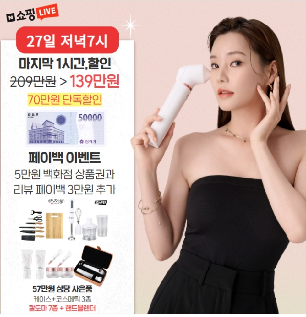평점 4.8돌파~1,000개가 넘는 후기로 간증된 ㅇㅇㅇ는 쫀쫀탱탱 동안피부 관리기로 유명하죠! 원샷원도트 조사로 무통증에 가까운 홈케어는 물론! 라이브방송에만 제공되는 최대 33%할인+24개월 무이자 할부+56만원 상당 사은품+페이백 이벤트 놓치지마세요, 오늘 저녁 7시 네이버쇼핑라이브에서만 진행!
