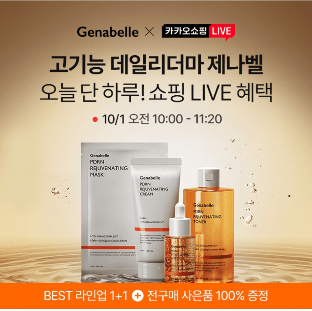 제나벨 x 카쇼라 고기능 데일리더마 제나벨의 역대급 라이브 방송 혜택! 오직 여기서만, 신제품 단독 공개 및 PDRN&00케어 최대 1+1 혜택! 전구매 사은품 100% 증정, 4만원 이상 구매 시 글루타민씨 아이크림, 6만원 이상 구매 시 글루타치온 마스크팩 증정, 구매인증고객 20명 추첨 PDRN 크림 40ml 증정까지!