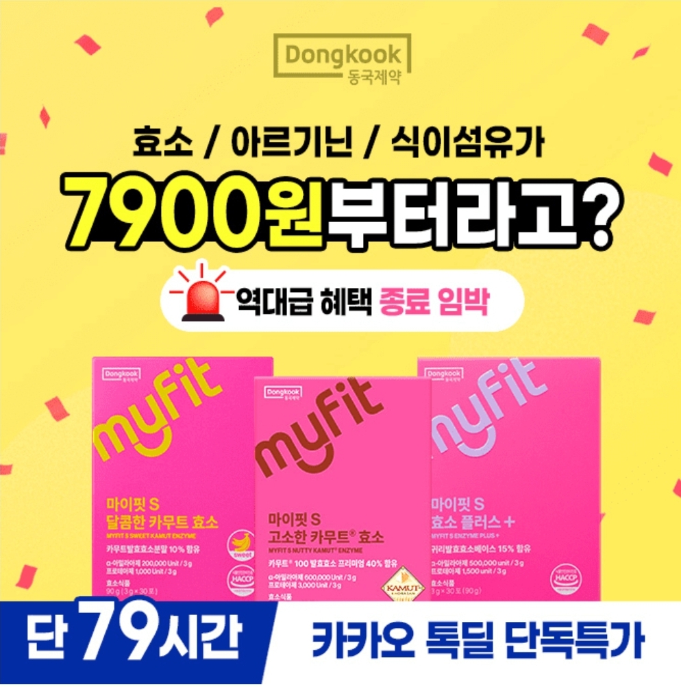 동국제약 카카오 톡딜 종료임박 곧 역대급 혜택이 사라져요! 10여가지 건강식품 7,900원 부터 + 무료배송 + 카무트00 전원증정 까지!