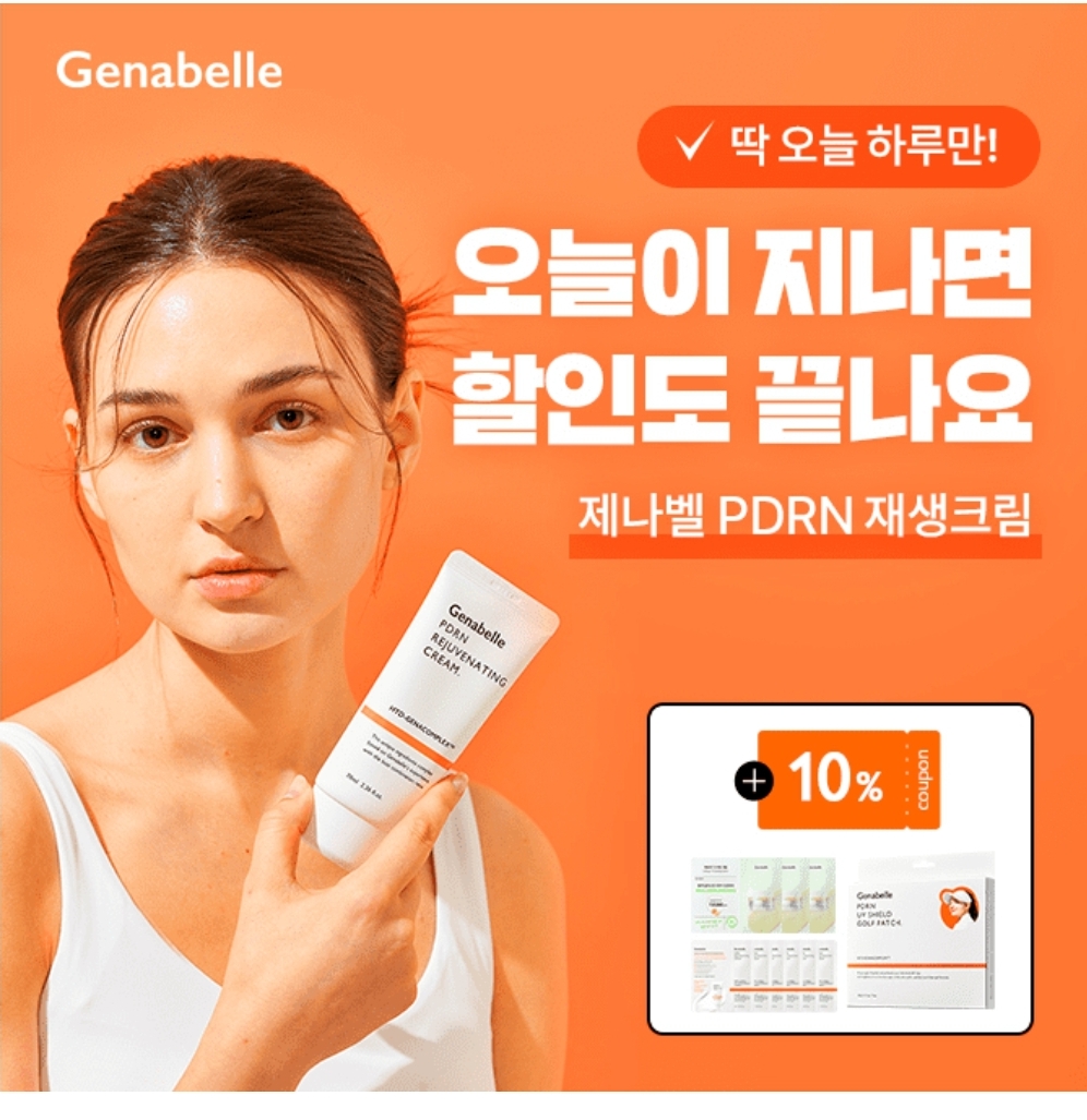 전국 30여개 피부과에 입점되어있는 더마코스메틱 제나벨의 PDRN 연어 자생크림을 포함한 전제품을 2월15일 단 하루! 1+1구성에 추가 10% 쿠폰까지 추가할인됩니다. 1개만 구매해도 증정되는 전제품 구매 시 사은품은 시그니처 PDRN 연어크림 6ml+진정에 탁월한 ㅇㅇㅇ 수분크림 6ml입니다. ㅇㅇㅇ은 무엇일까요?