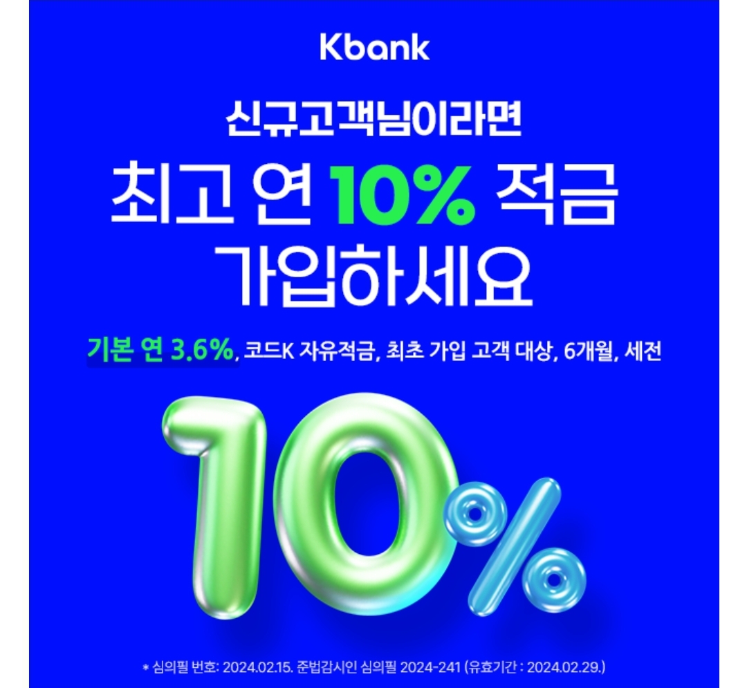 케이뱅크가 처음이라면 코드k 자유적금 가입시 최고 연ㅇㅇ%(기본 연3.6%,6개월,세전)까지 우대받을 수 있는 금리우대코드를 받을 수 있는데요, ㅇㅇ에 들어갈 숫자는 무엇일까요?