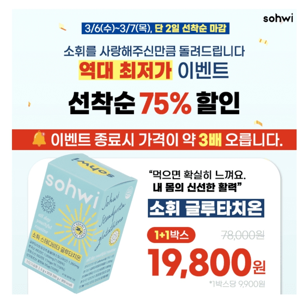 단2일만 75% 소휘 글루타치온 1+1 득템기회