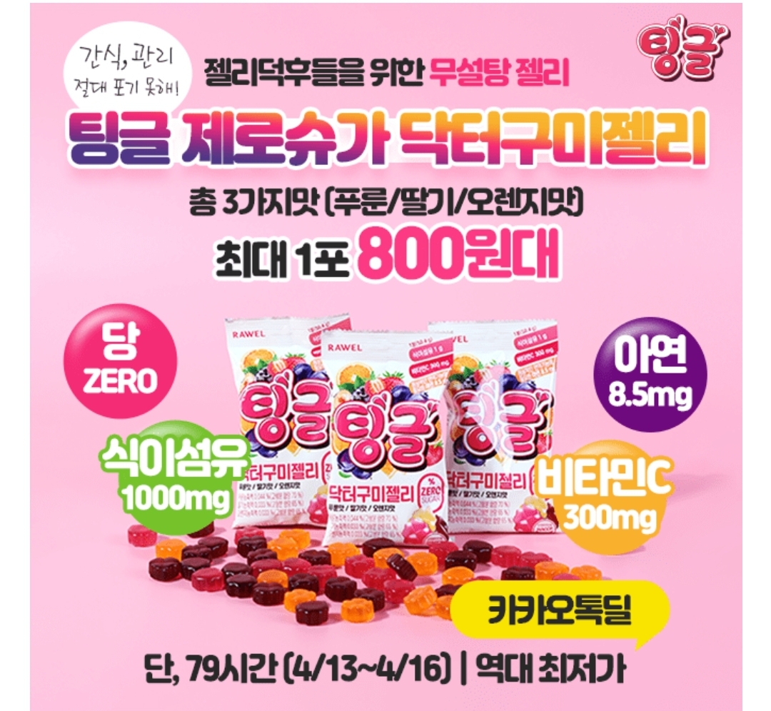 푸룬,딸기,오렌지 총 3가지맛으로 이루어진 로엘 팅글 제로슈가 구미젤리는 제로슈가뿐만 아니라 다양한 영양을 보유한 건강간식입니다. 1포기준 단백질 400mg, 식이섬유 1000mg, 비타민C 300mg, 아연 8,5mg 함유하고 있는데요.또한 설탕, 물엿, ㅇㅇㅇㅇ을 첨가하지 않아 안심하고 섭취가능합니다. ㅇㅇㅇㅇ은 무엇일까요? 힌트 ㅇㅅㅍㅌ