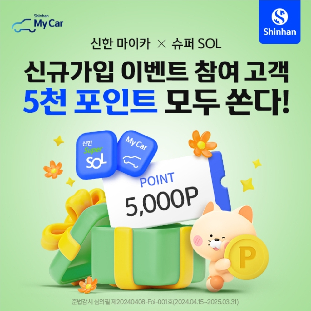 4월 신한 슈퍼SOL 앱 설치 및 신규 가입 완료한 ㅇㅇㅇㅇ 개인 회원 모두에게 5000P를 100% 드려요