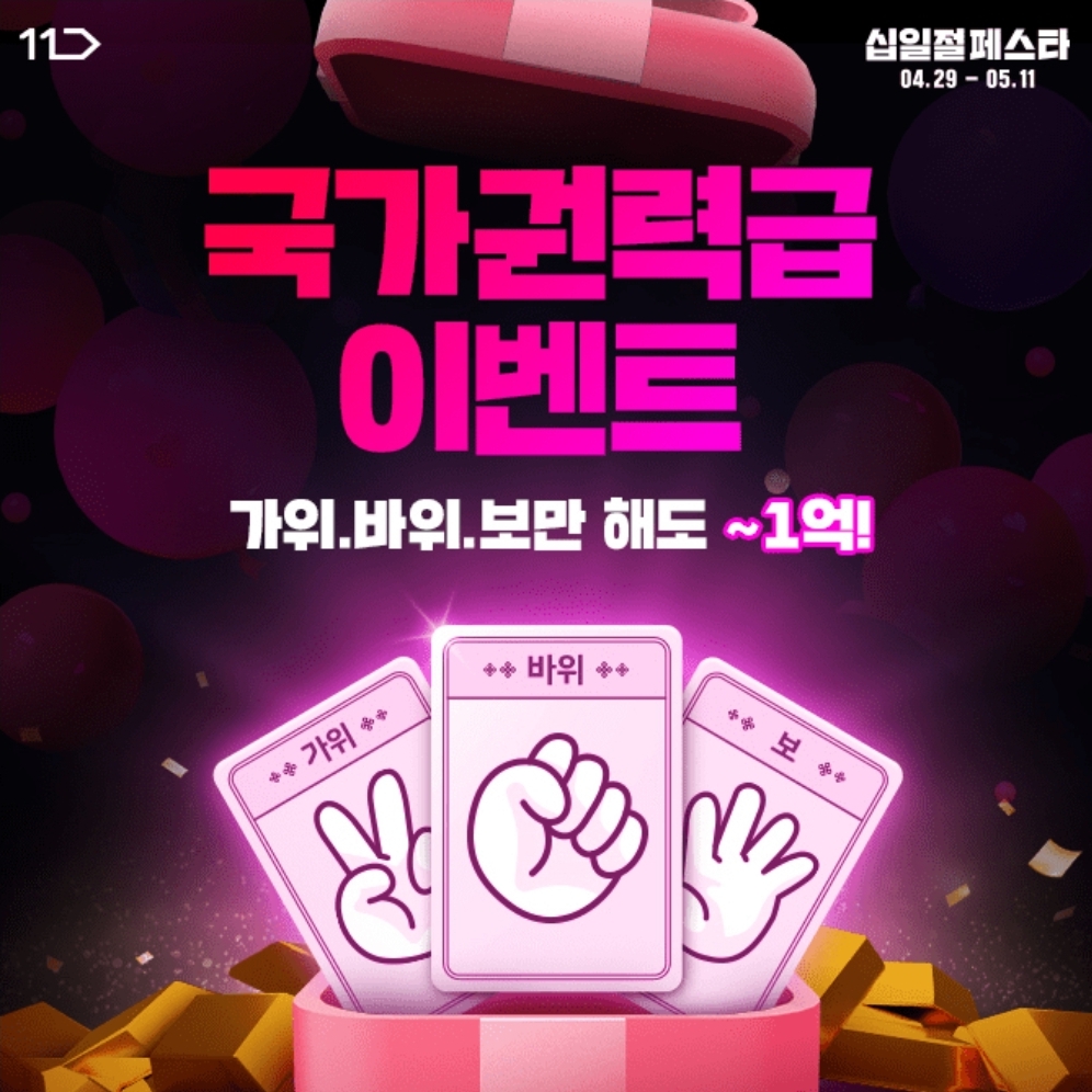 11번가의 역대급 억만장자' 이벤트! 가위.바위.보 게임을 이기기만 해도 억! 소리나는 경품 당첨!