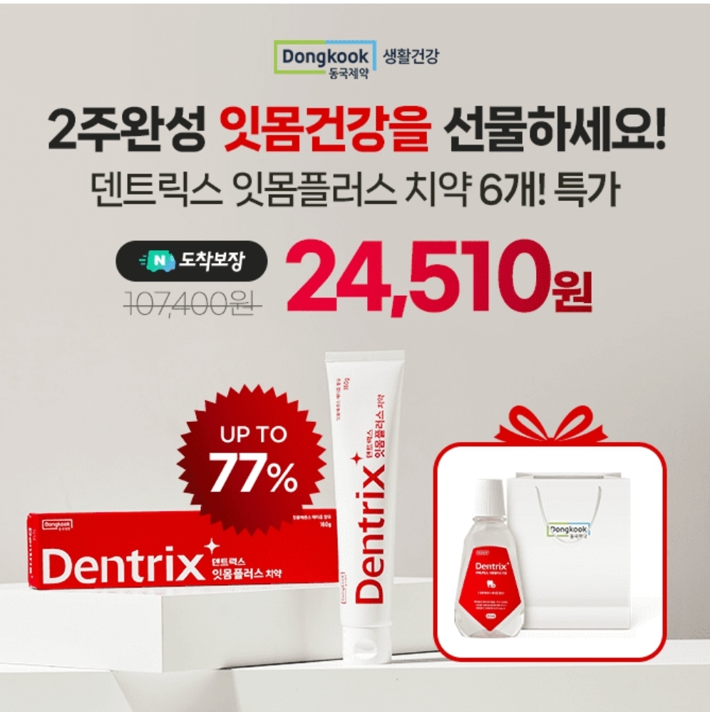 2주 잇몸케어로 더욱 강해진 덴트릭스 치약 6개 특가!