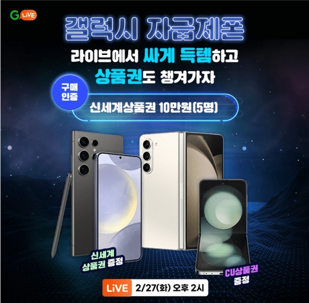 삼성 갤럭시 ㅇㅇㅇ폰 라이브에서 싸게 득템하고 상품권도 챙겨가세요!