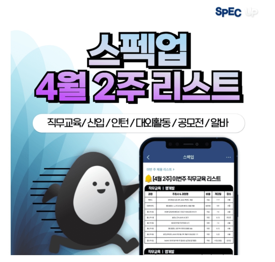 총 1천 개 이상의 스펙업 주간 리스트 지금 확인해보기 지니어트 용돈퀴즈정답 4월 9일 15시30분