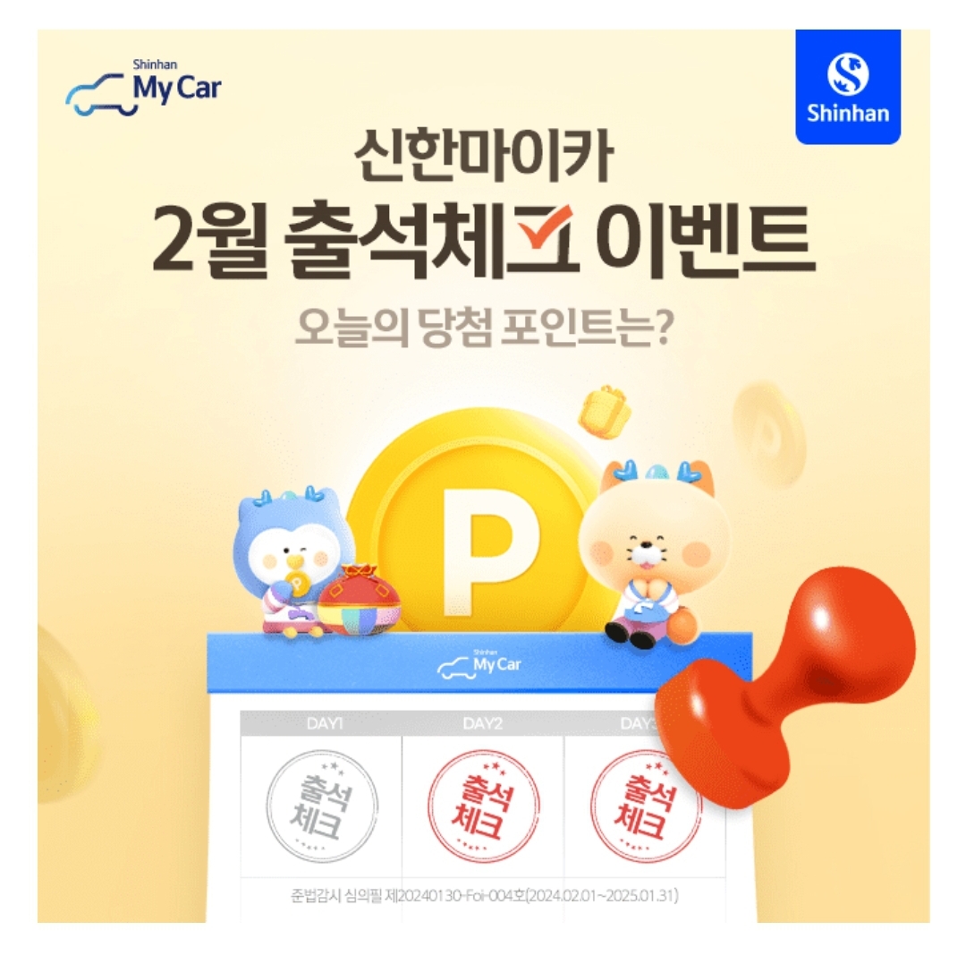 행사기간(2024년2월1일~2024년2월29일)동안 출석체크와 마이카 미션을 참여하면 이벤트 자동응모!
