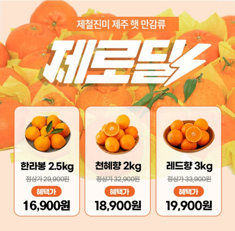 3시간동안 진행되는 제로딜 타임특가에서 제철진미 제주 햇 한라봉 레드향 천해향 2.5kg ~4.5kg가 2.5kg에 ㅇㅇㅇㅇㅇ원 무료배송 43%할인으로 진행됩니다.빈 간에 들어갈 숫자는 무엇일까요?