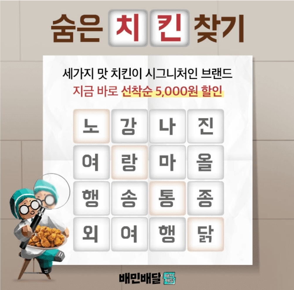 배달의 민족에서는 3월3일까지 ㅇㅇㅇㅇ이 선착순 5천원 힐인 중이에요!