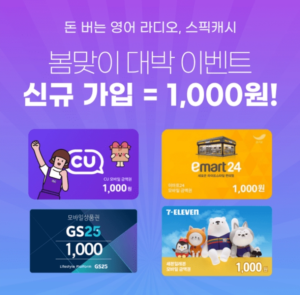 스픽캐시 가입만해도 천원 GS25상품권 증정