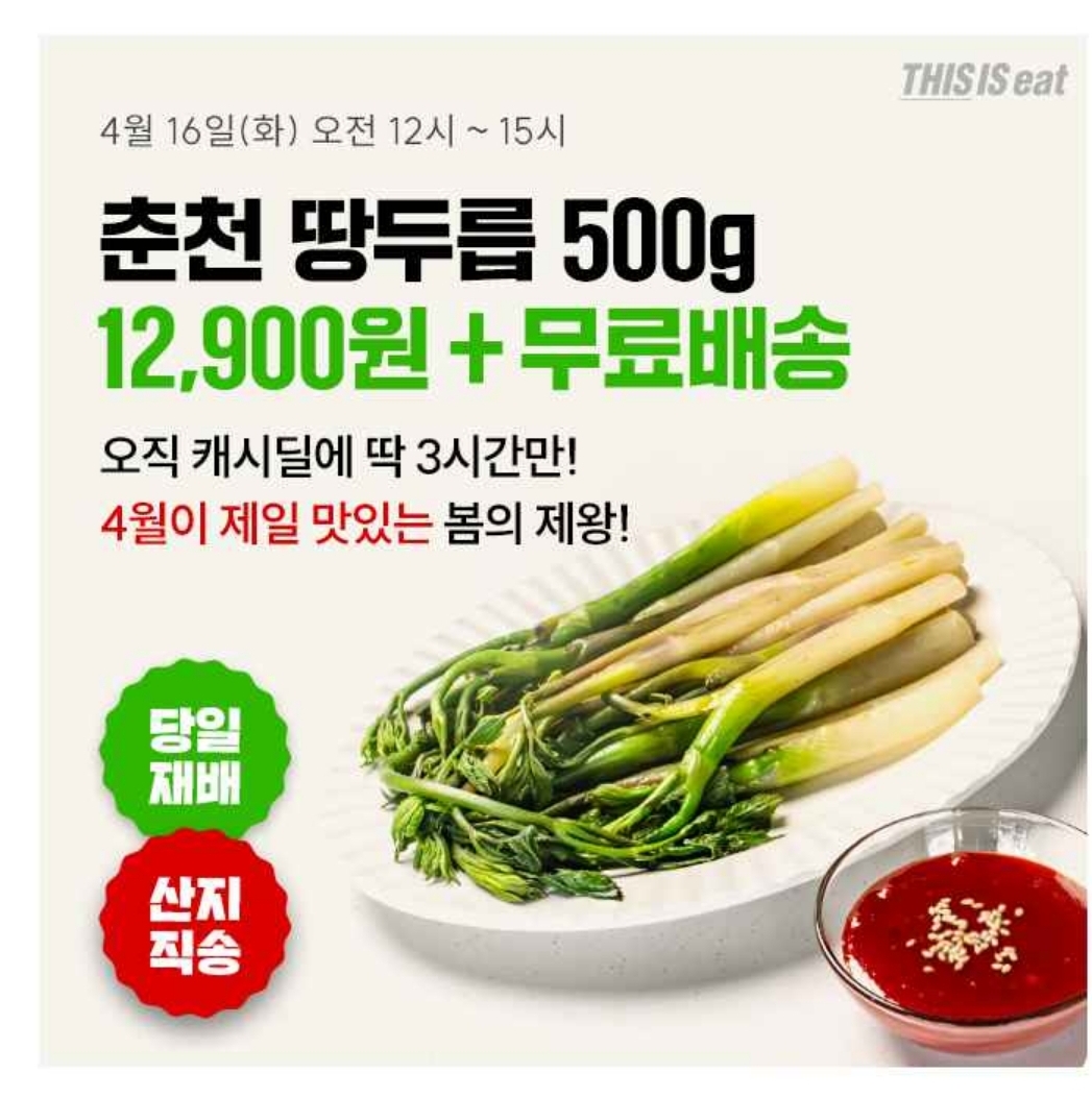 제철맞은 자연산 춘천 땅두릅 500g 역대급 할인!