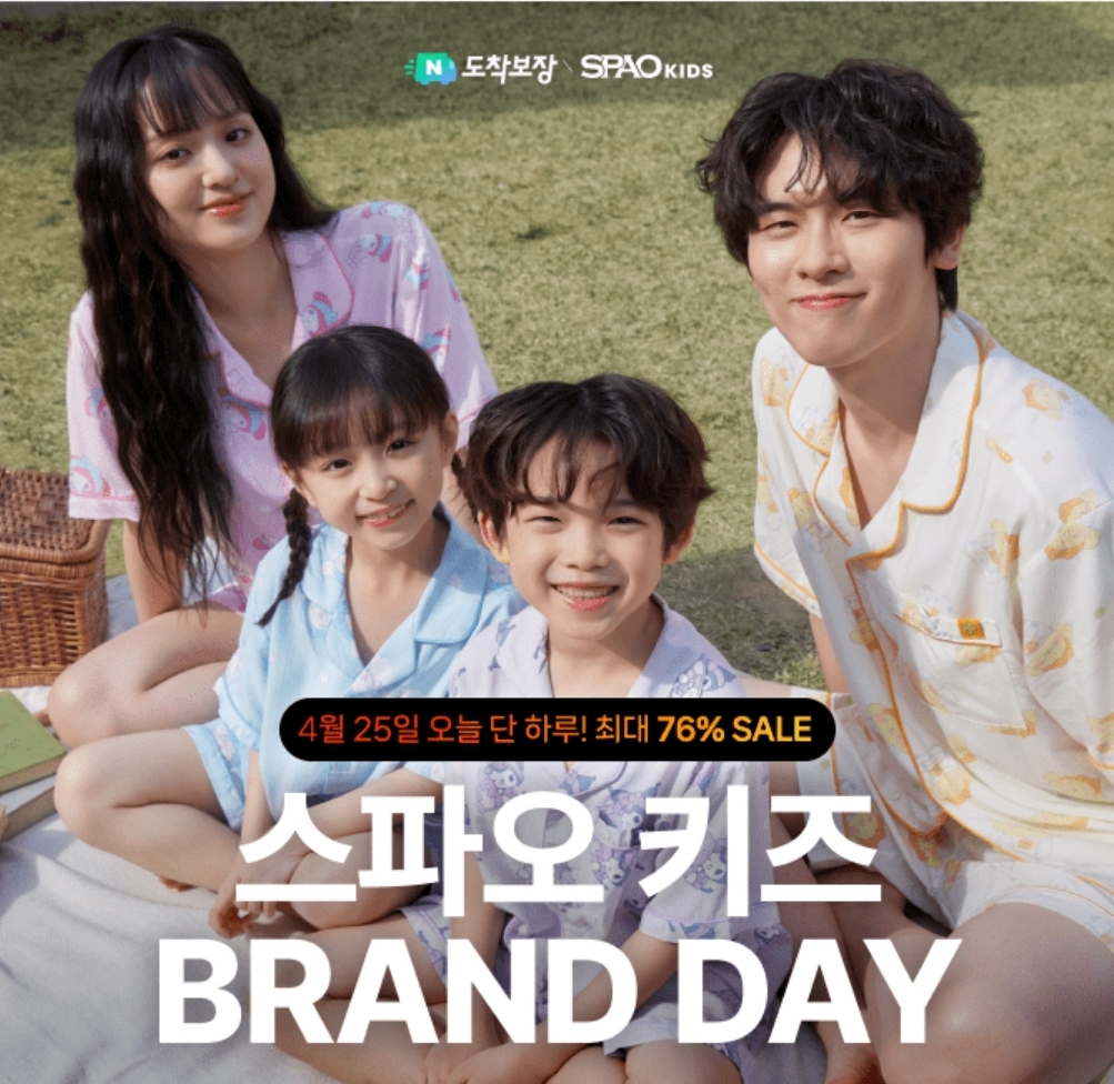 스파오 키즈 쇼핑 라이브에서 콜라보 반팔 파자마를 15%+5% ㅇㅇ혜택으로 만나보세요!(힌트:ㄷㅂ)