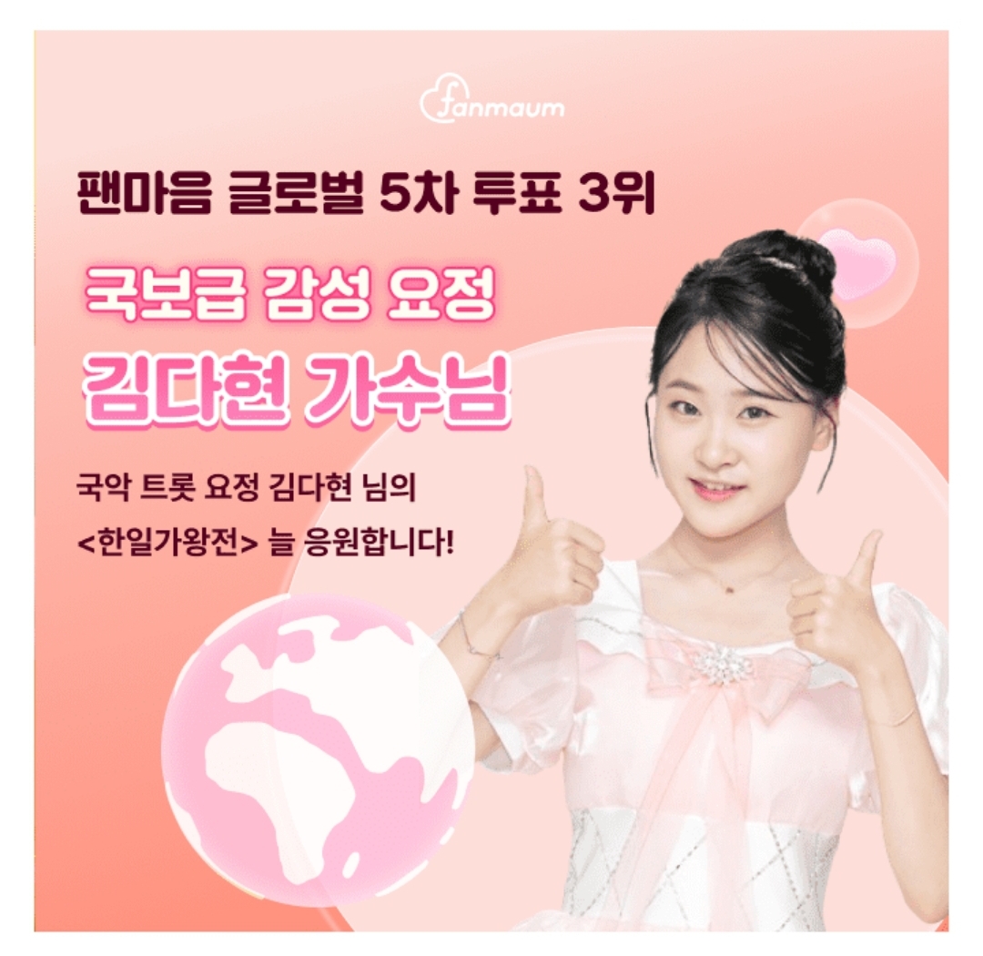 팬마음 3위 스타 김다현 님은 서울공연예술고등학교 입학식에서 ㅇㅇㅇ ㅇㅇ로 선서를 하는 등 대한민국 여자 트로트를 대표하는 가수로 성장하고 있어요!