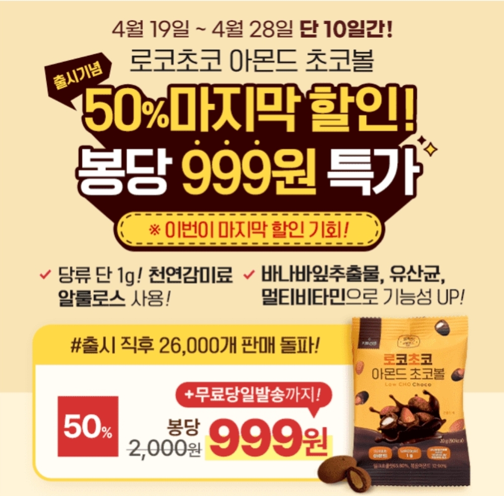 출시기념 마지막50%↓ 로코초코아몬드 999원 특가