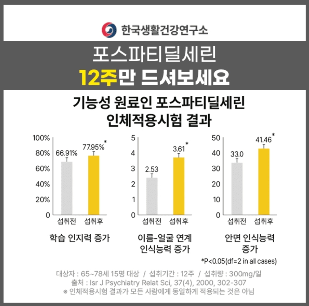 두뇌 건강 관리가 필요한 모든 분을 위한 포스파티딜세린 징코 PS는 식약처 인정