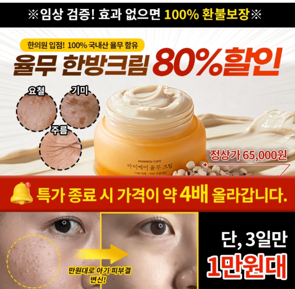 미친혜택 율무 한방크림 1만원대+환불 보장!