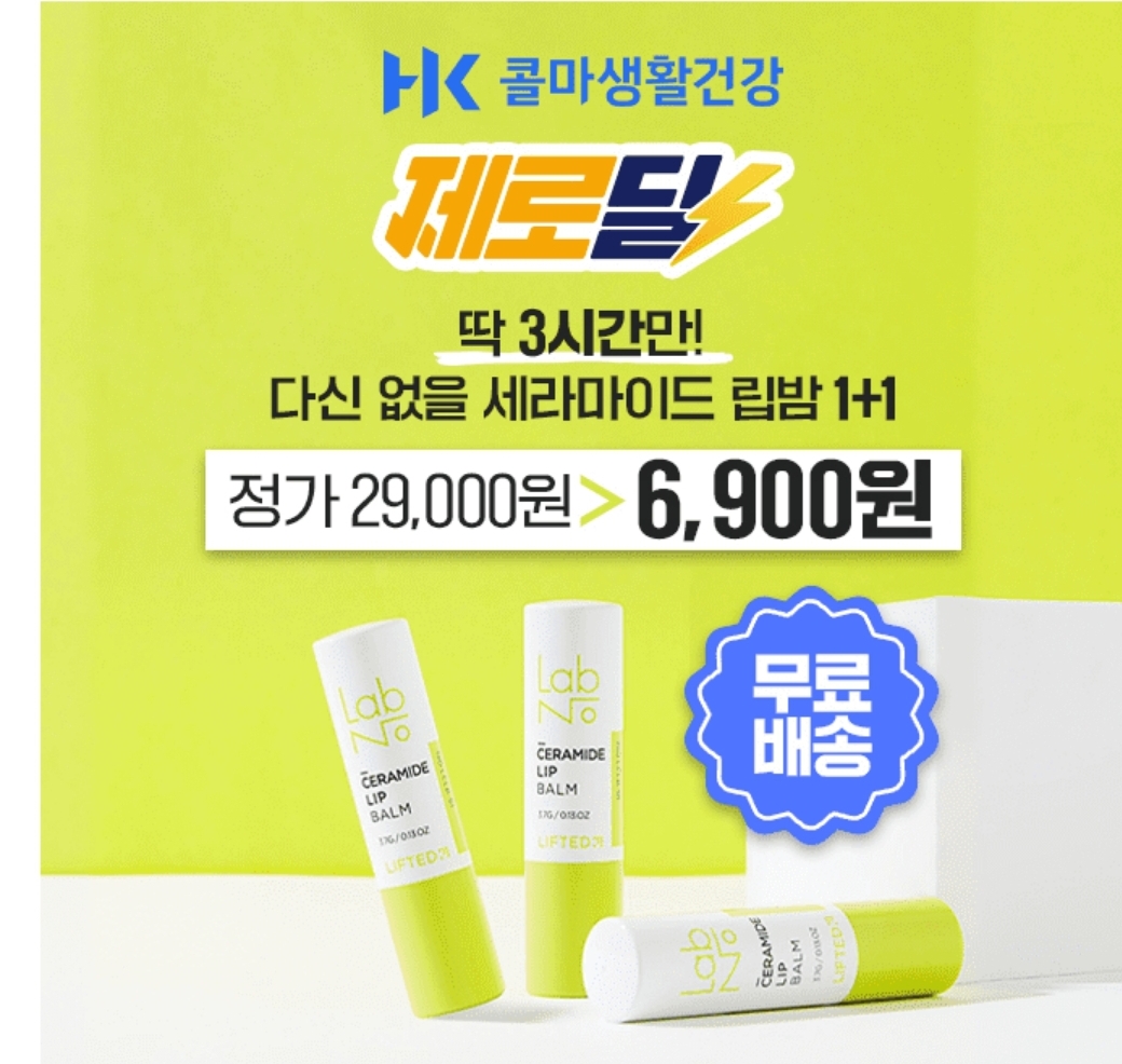 3시간동안 진행되는 캐시딜 타임특가에서 리프티드 세라마이드 립밤 1+1 6,900월 +무배까지에 진행됩니다.