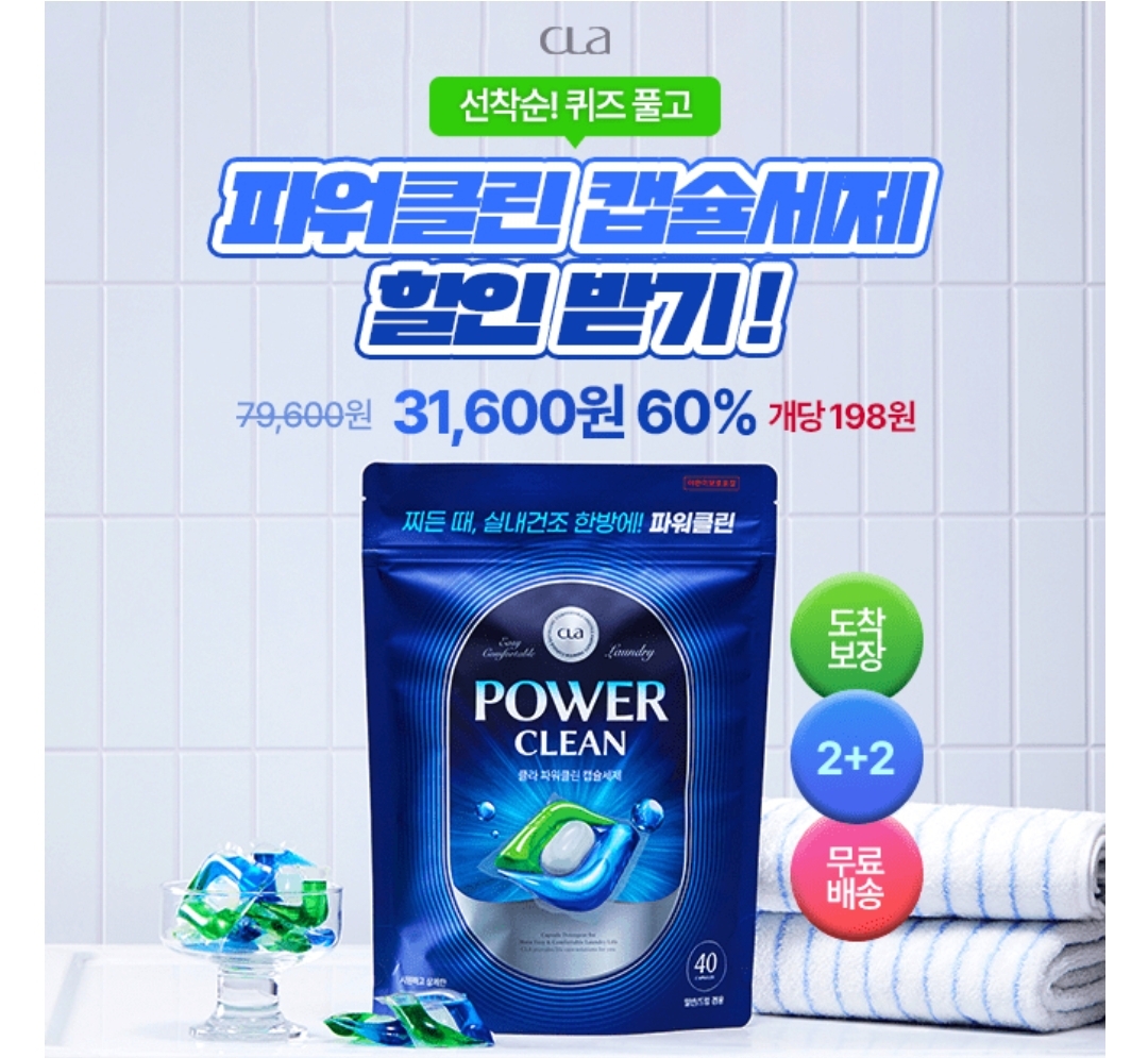 클린 라이프케어 파워클린 캡슐세제 퀴즈 풀고 캐시 받자!