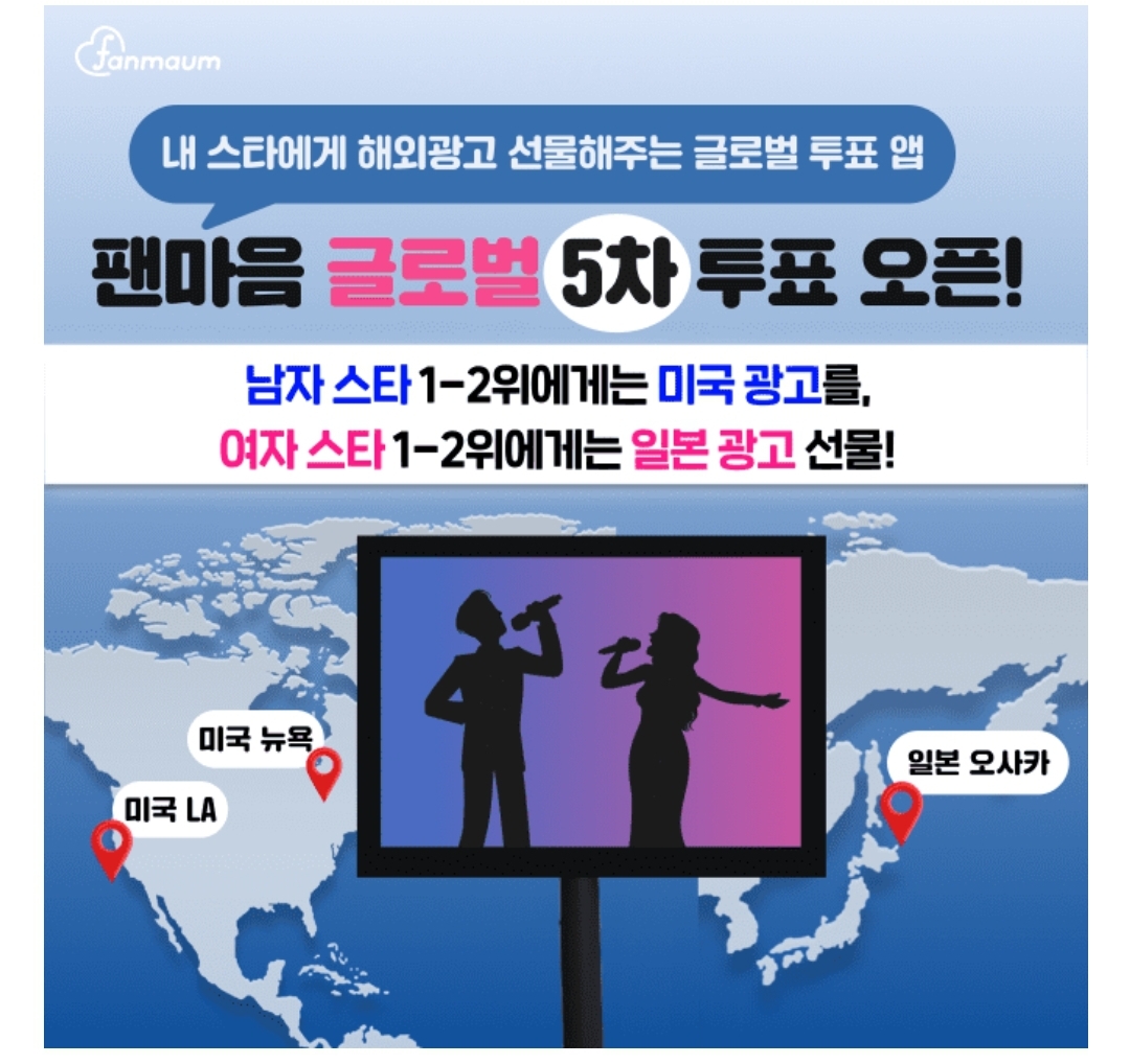 팬마음 글로벌 5차  투표로 내 스타에게 미국,일본 광고 선물해보세요
