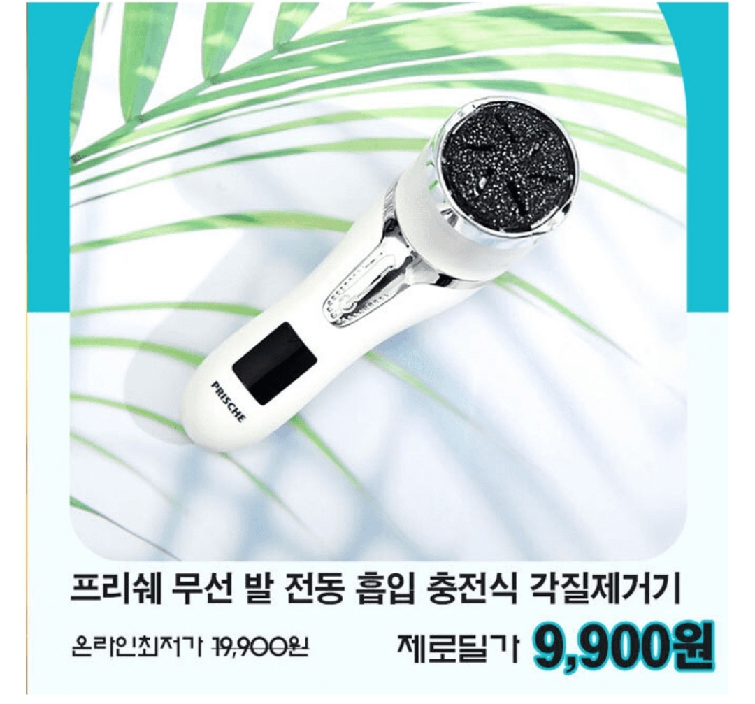 3시간동안 진행되는 제로딜 타임특가에서 프리쉐 무선 발 굳은살 전동 흡입 충전식 각질제거기가 9,900원 무료배송 ㅇㅇ% 할인으로 진행됩니다. 빈칸에 들어갈 숫자는 무엇일까요?