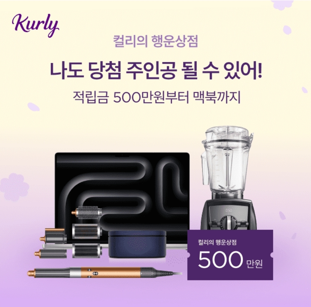 컬리 적립금 500만원부터 맥북프로 16인치까지 풍성하게 준비했답니다! 당첨자 발표는 3월 ㅇㅇ일에 진행되니,컬리 매일 방문하고 당첨확율을 높여보세요!
